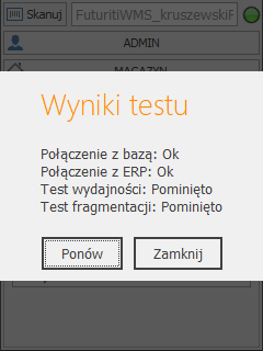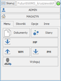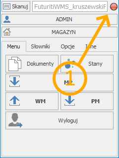 Jeśli WMS zintegorwany jest z Futuriti Connector status połączenia można monitorować w menu głównym WMS