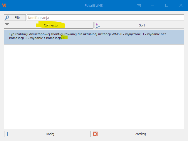 W menu głównym nawiguj do konfiguracji: zakładka Opcje → Konfiguracja, następnie przejdź do filtra Connector i dwukrotnie kliknij w widniejący wpis dotyczący wydań dwuetapowych