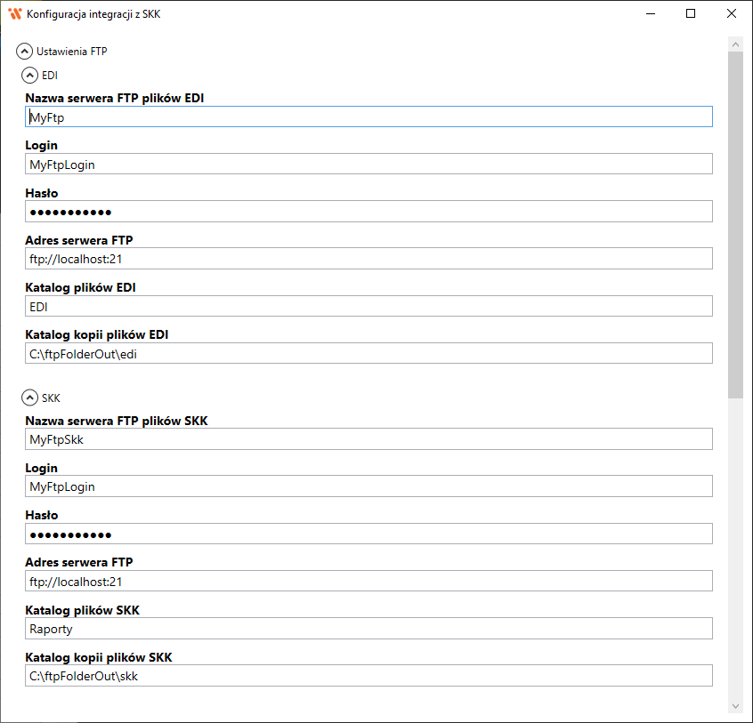 - SKK_EdiFtpName – nazwa konfiguracji FTP pod EDI