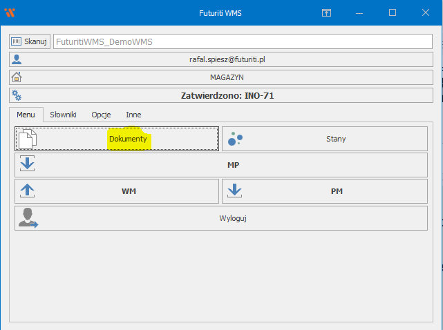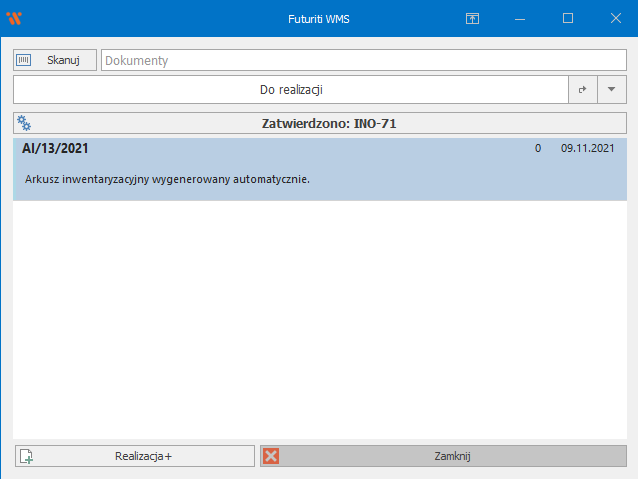 - UWAGA !! Przed rozpoczęciem inwentaryzacji sprawdź czy wszystkie dokumenty w WMS zostały zrealizowane.