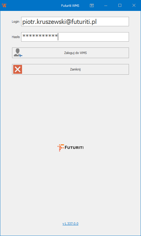 Tradycyjne i pierwsze logowanie odbywa się poprzez przypisany do konta, zarejestrowany adres e-mail wraz z hasłem do konta Futuriti