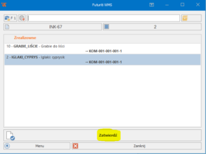 4. Po przeskanowaniu prawidłowych ilości, należy zeskanować kod lokalizacji celem jej ponownego zamknięcia oraz kliknąć „Zatwierdź”.