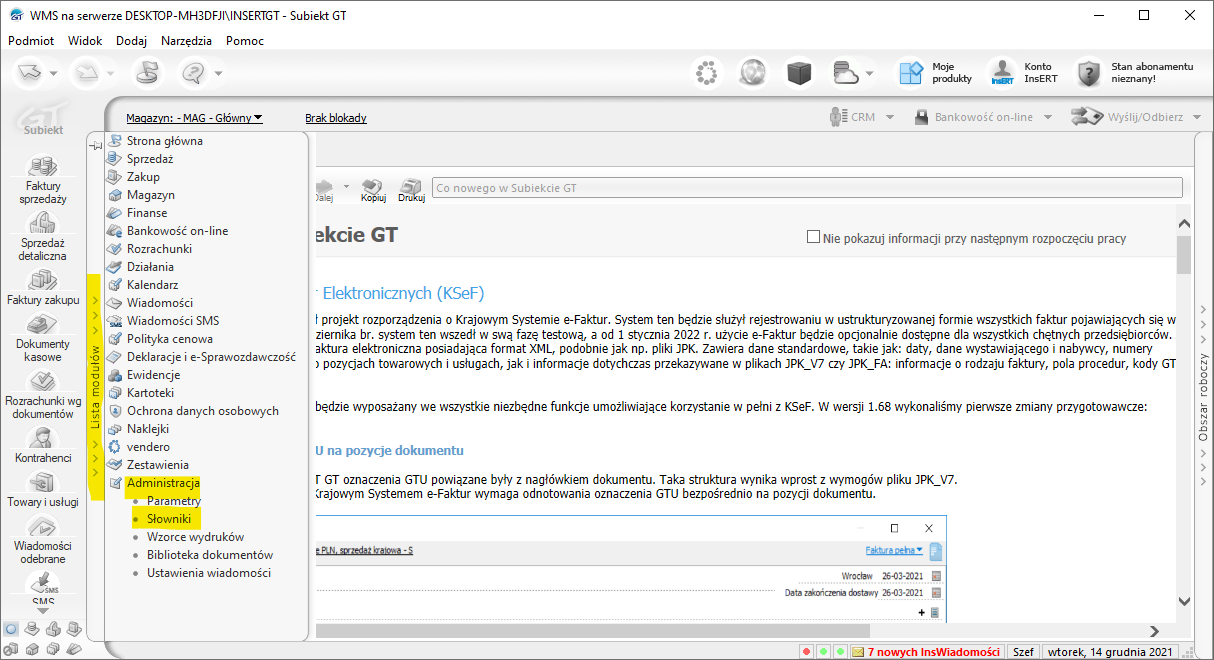 Aby ERP Subiekt GT mógł współpracować z Futuriti WMS będzie wymagane: